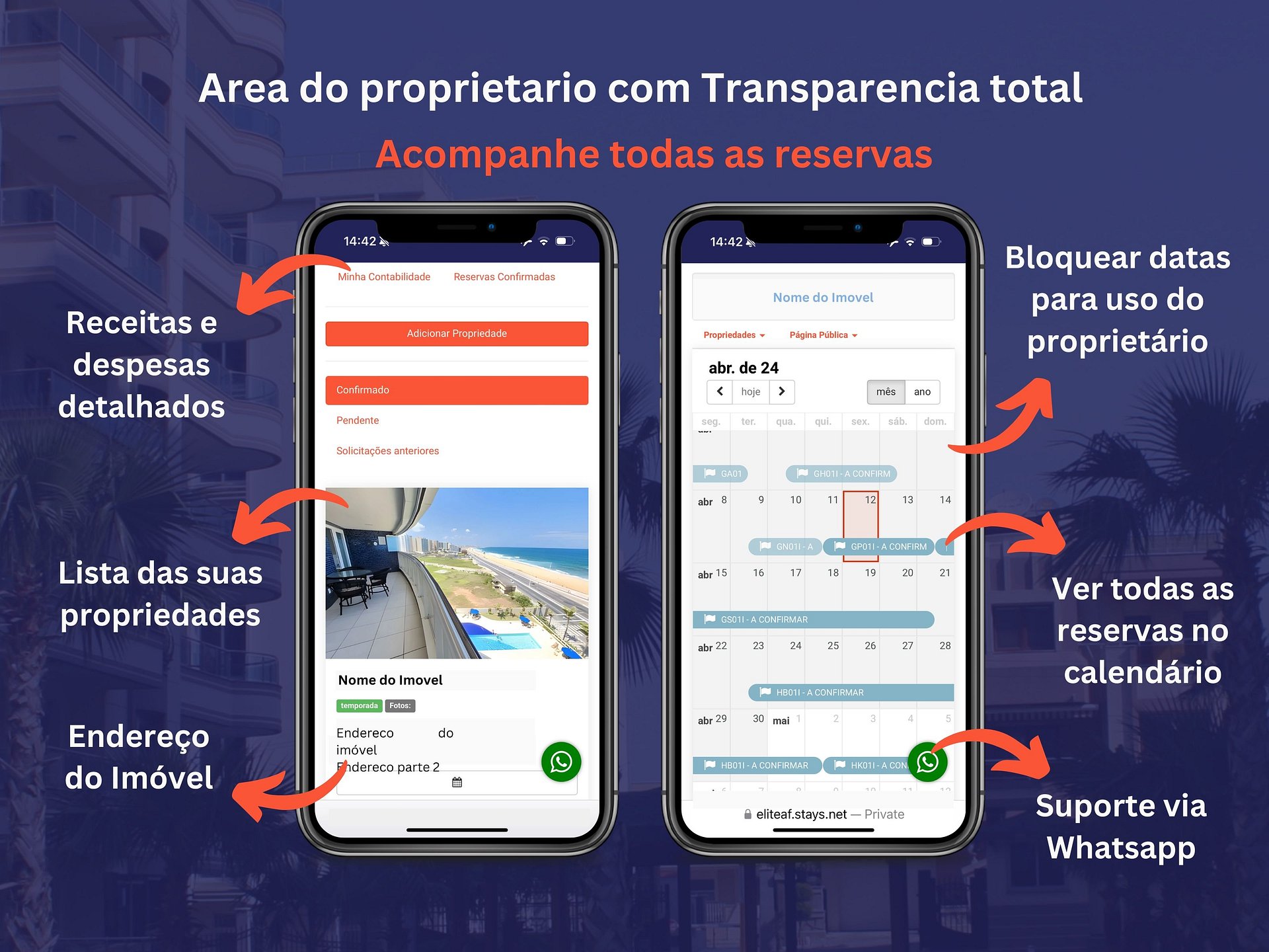 ✓ Gestão de calendário e preços